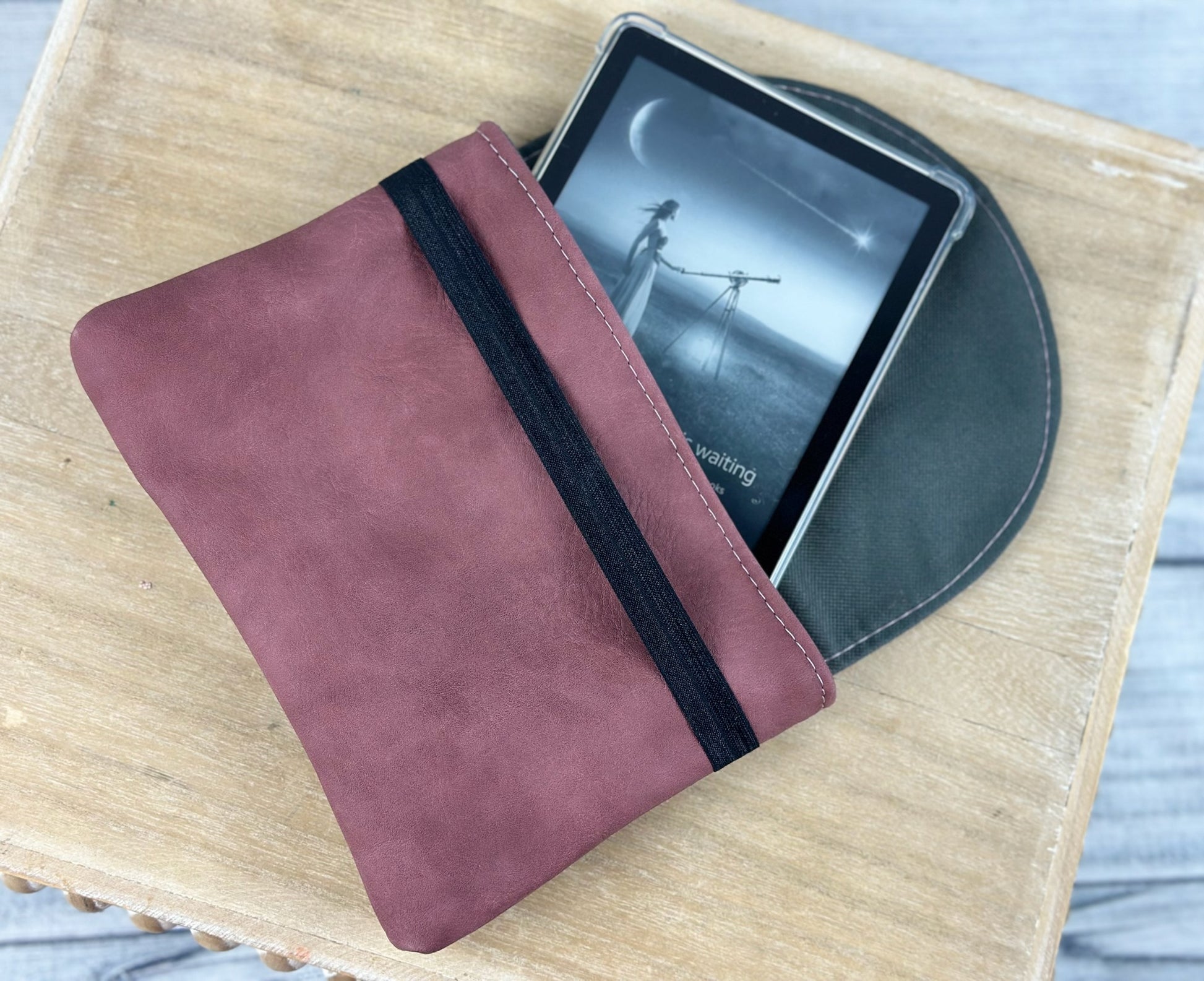 The Book Bestie is a great option for holding your kindle and any accessories. It is approximately 7in x 5in, and can hold either a kindle or a smaller paperback book. Made from hiqh quality faux leather, cotton, and waterproof canvas, it's perfect for the book lover in your life.