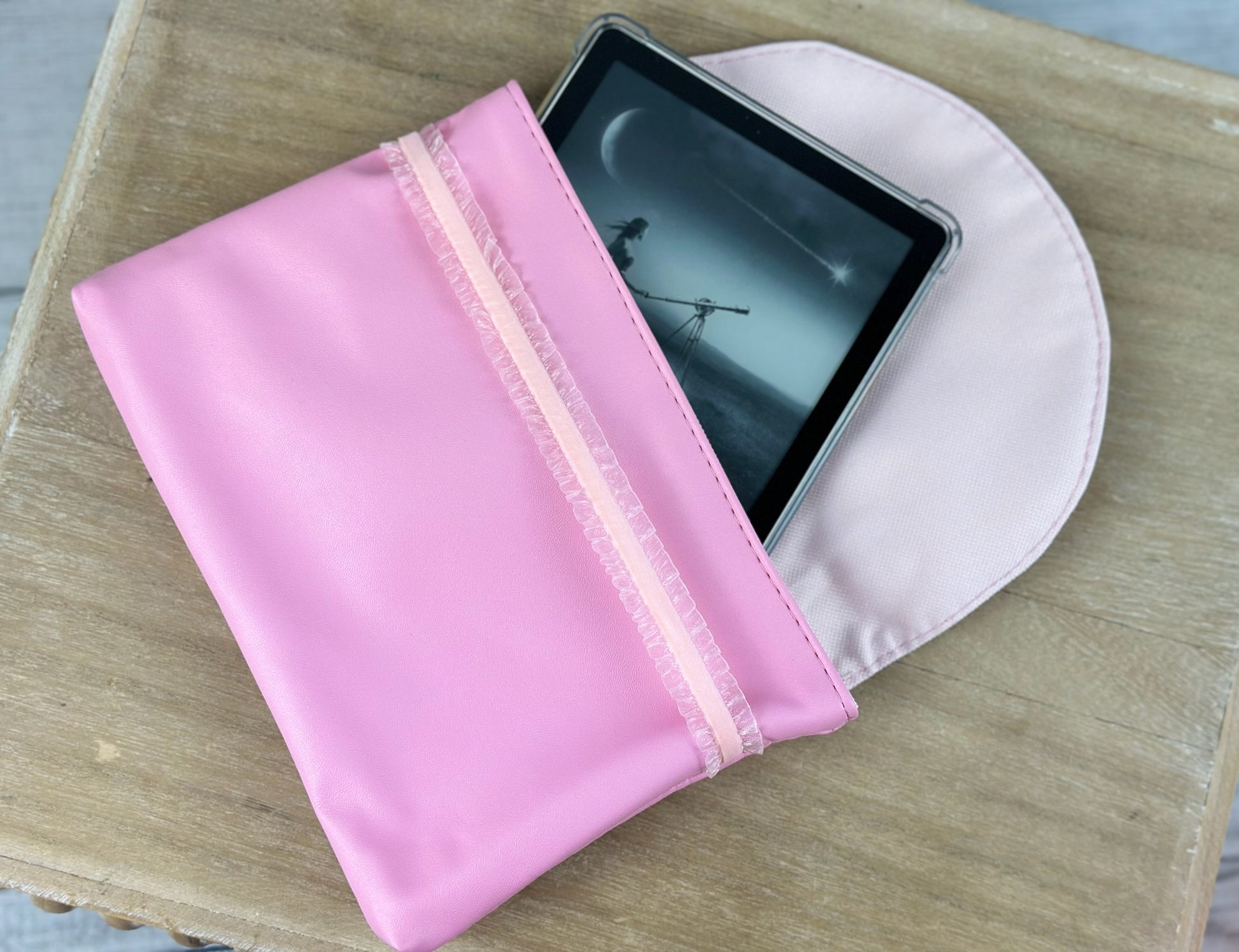 The Book Bestie is a great option for holding your kindle and any accessories. It is approximately 7in x 5in, and can hold either a kindle or a smaller paperback book. Made from hiqh quality faux leather, cotton, and waterproof canvas, it's perfect for the book lover in your life.