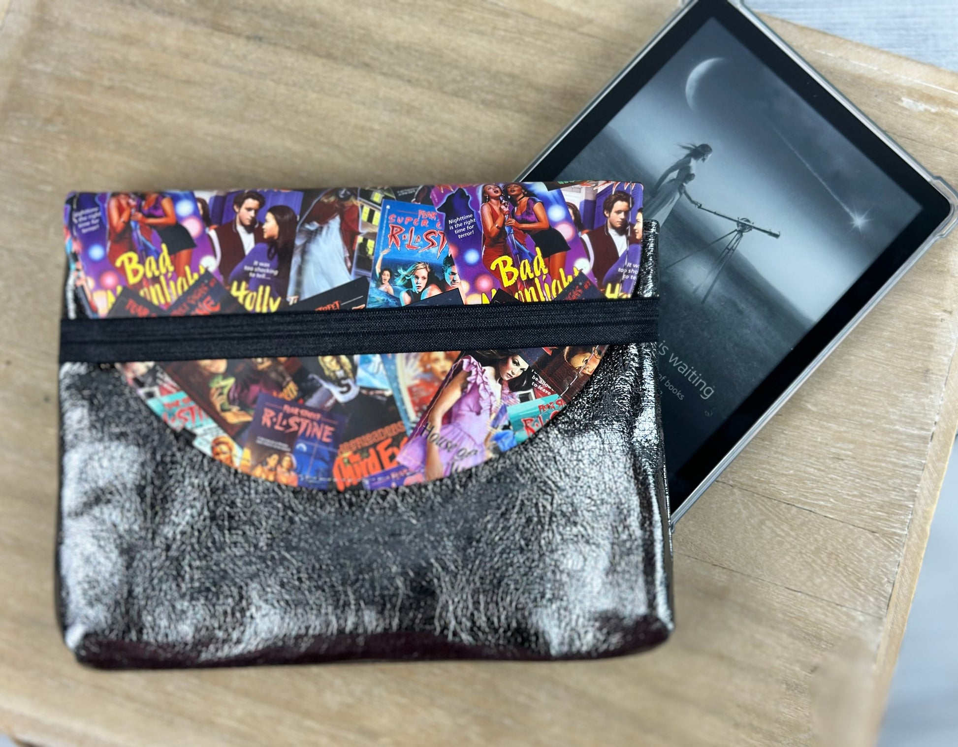 The Book Bestie is a great option for holding your kindle and any accessories. It is approximately 7in x 5in, and can hold either a kindle or a smaller paperback book. Made from hiqh quality faux leather, cotton, and waterproof canvas, it's perfect for the book lover in your life.