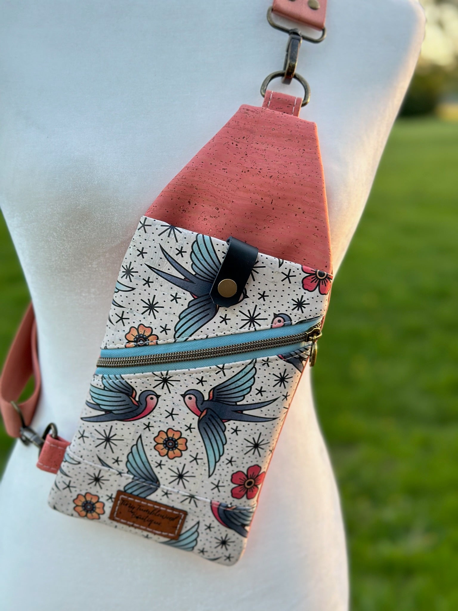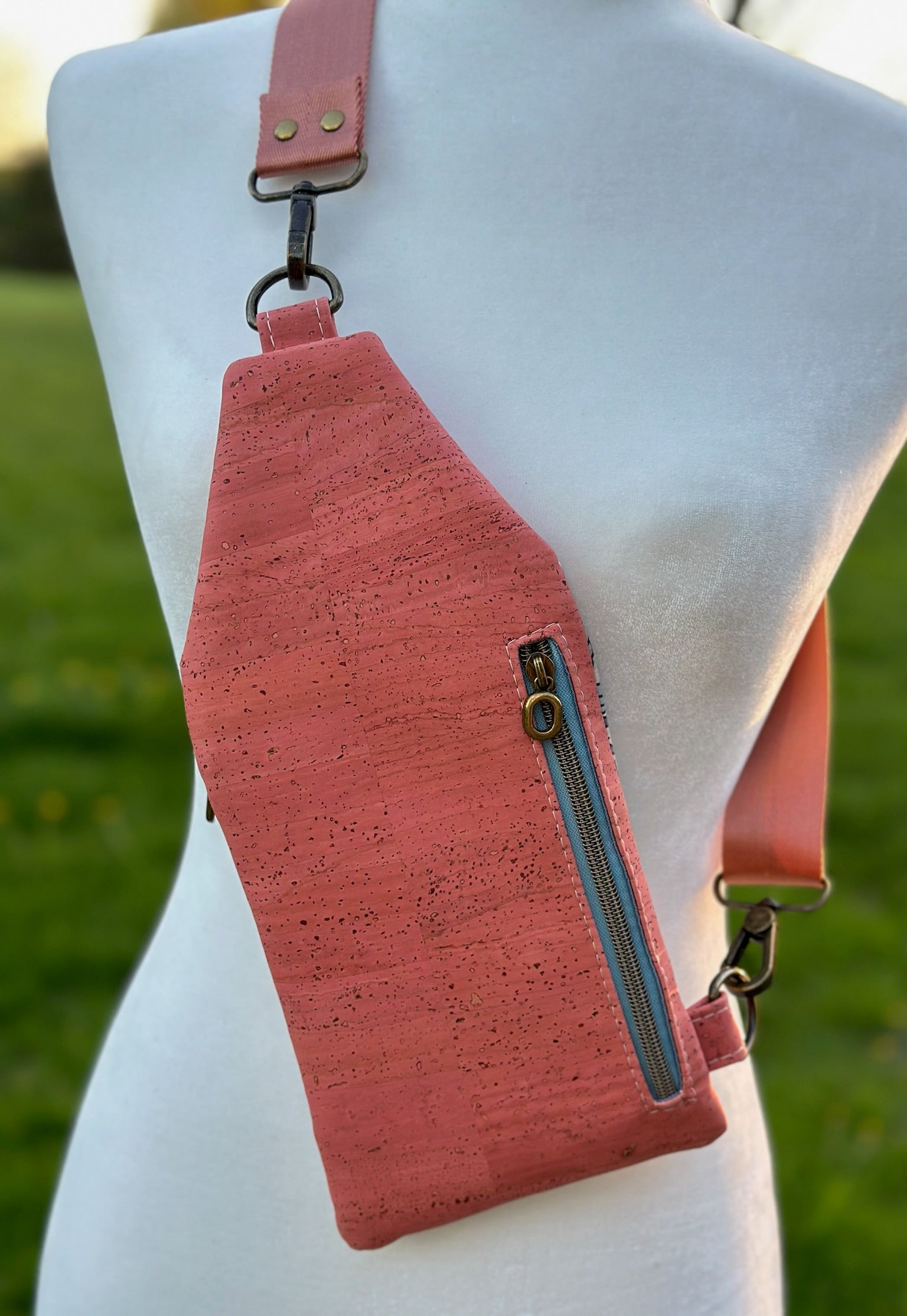 This mini travel sling is made from all natural cork fabric and creates sustainable and durable bag.