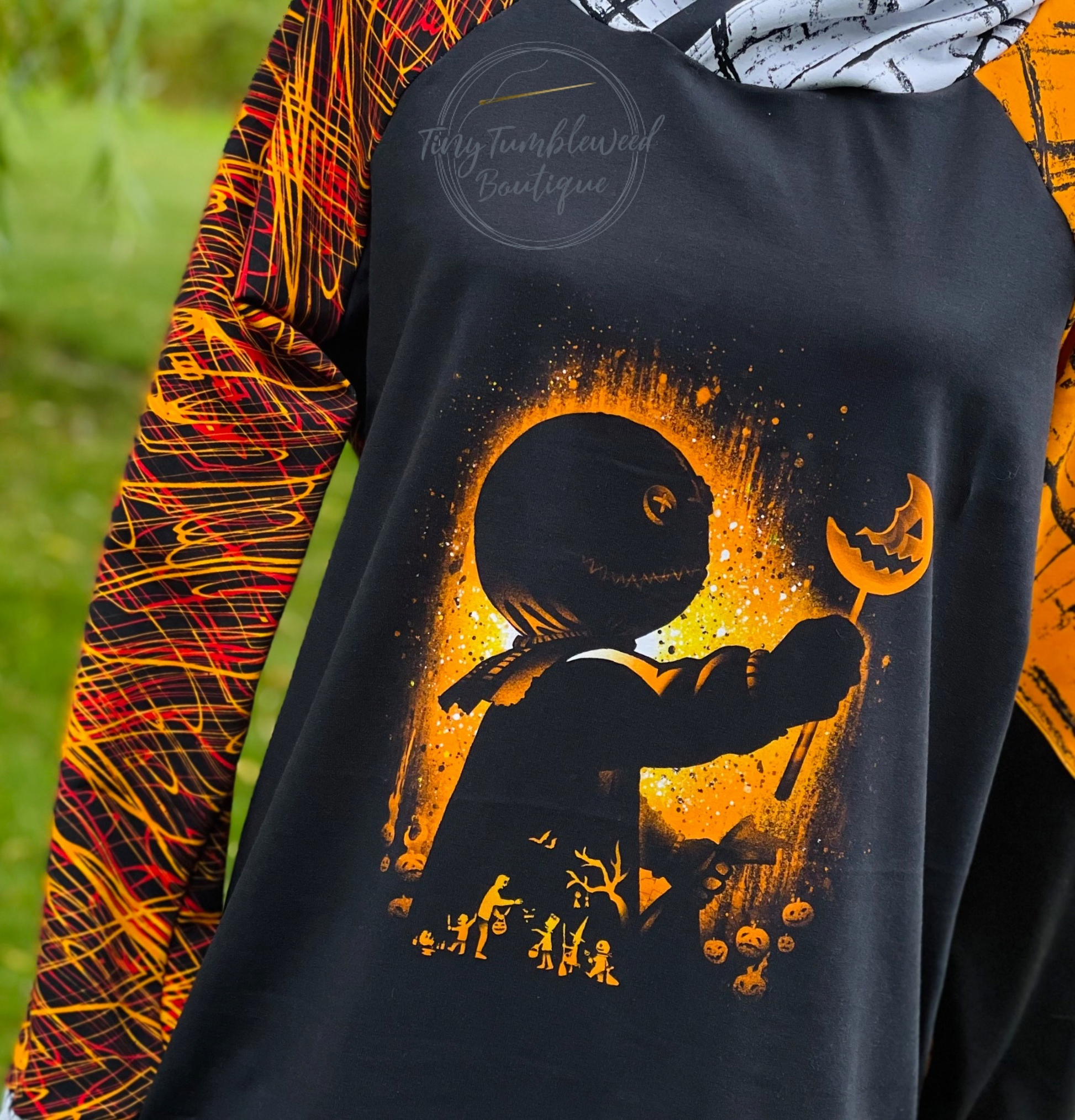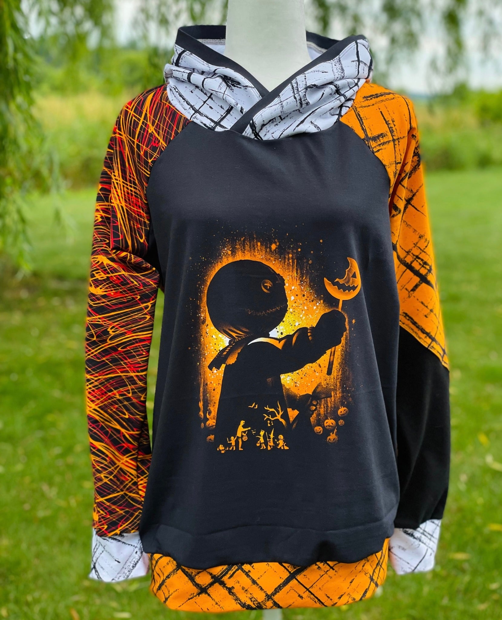 This fabulous hoodie features a favorite of spooky season. . The hoodie is made of high quality, super-soft cotton spandex and is thin enough for warmer climates, but comfortable enough for layering in colder climates.
